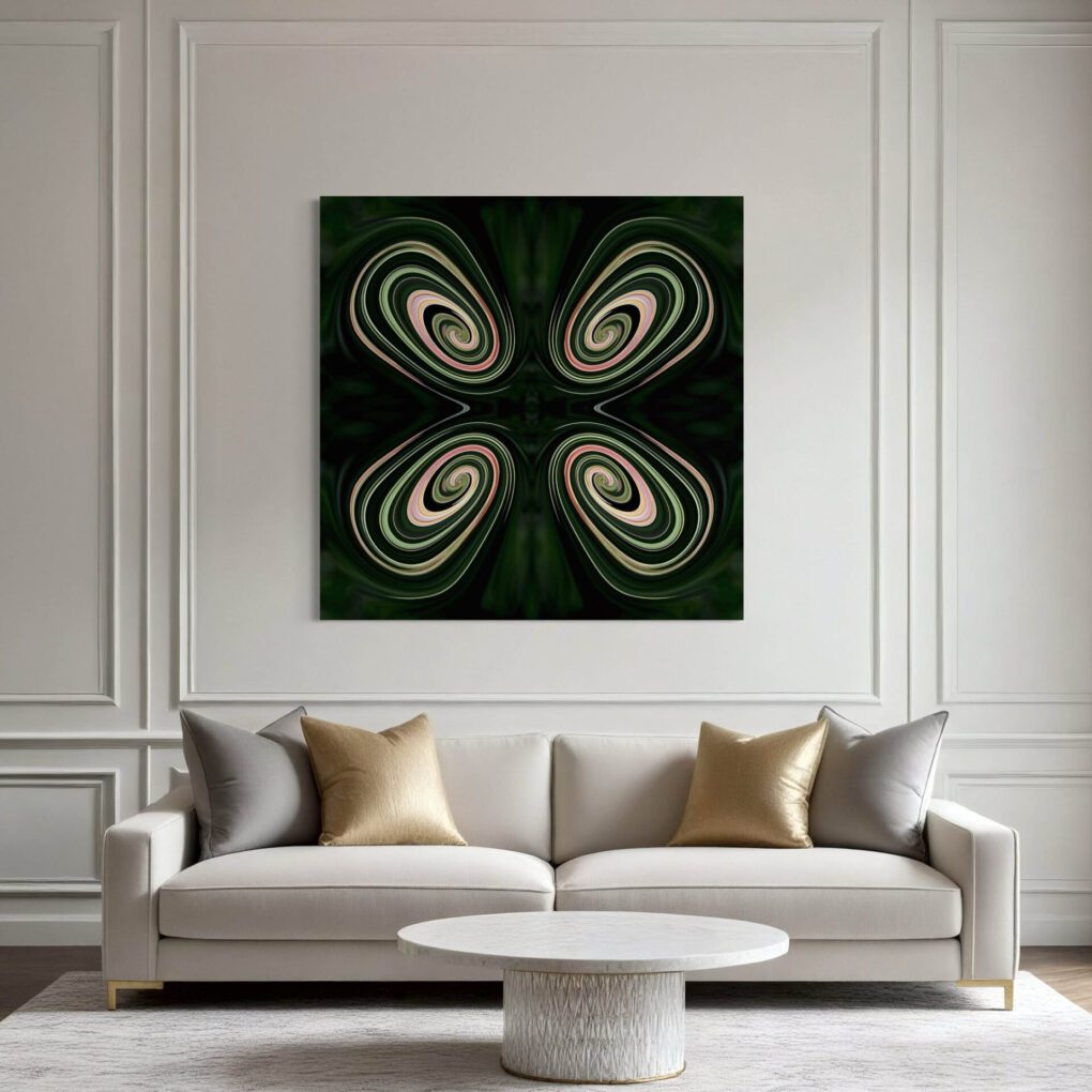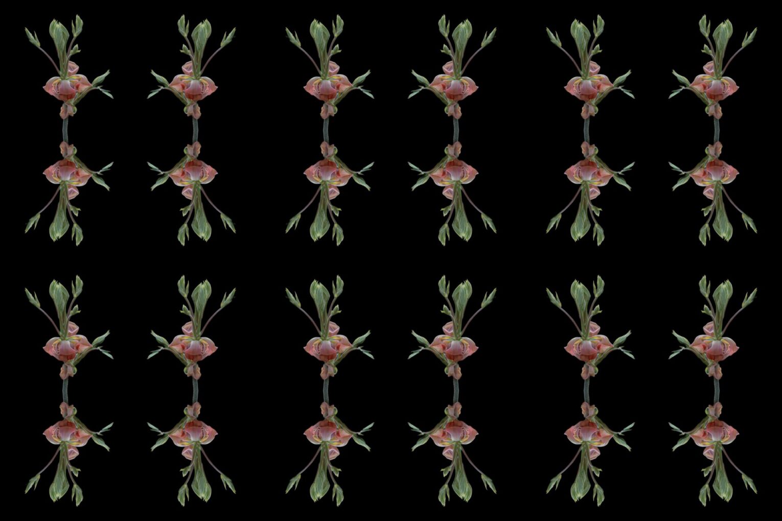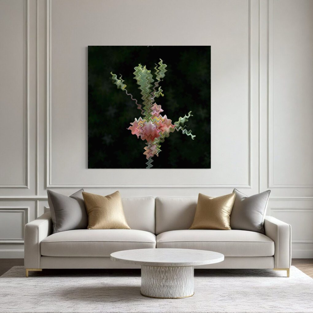 A delicate early-spring flower unfurling in the woods was the muse for this original photograph. The muted pinks and deep green tones inspired me to create abstract compositions with layered patterns and expressive forms. The series highlights the quiet beauty and sculptural presence of this understated bloom. —Lauren Karp