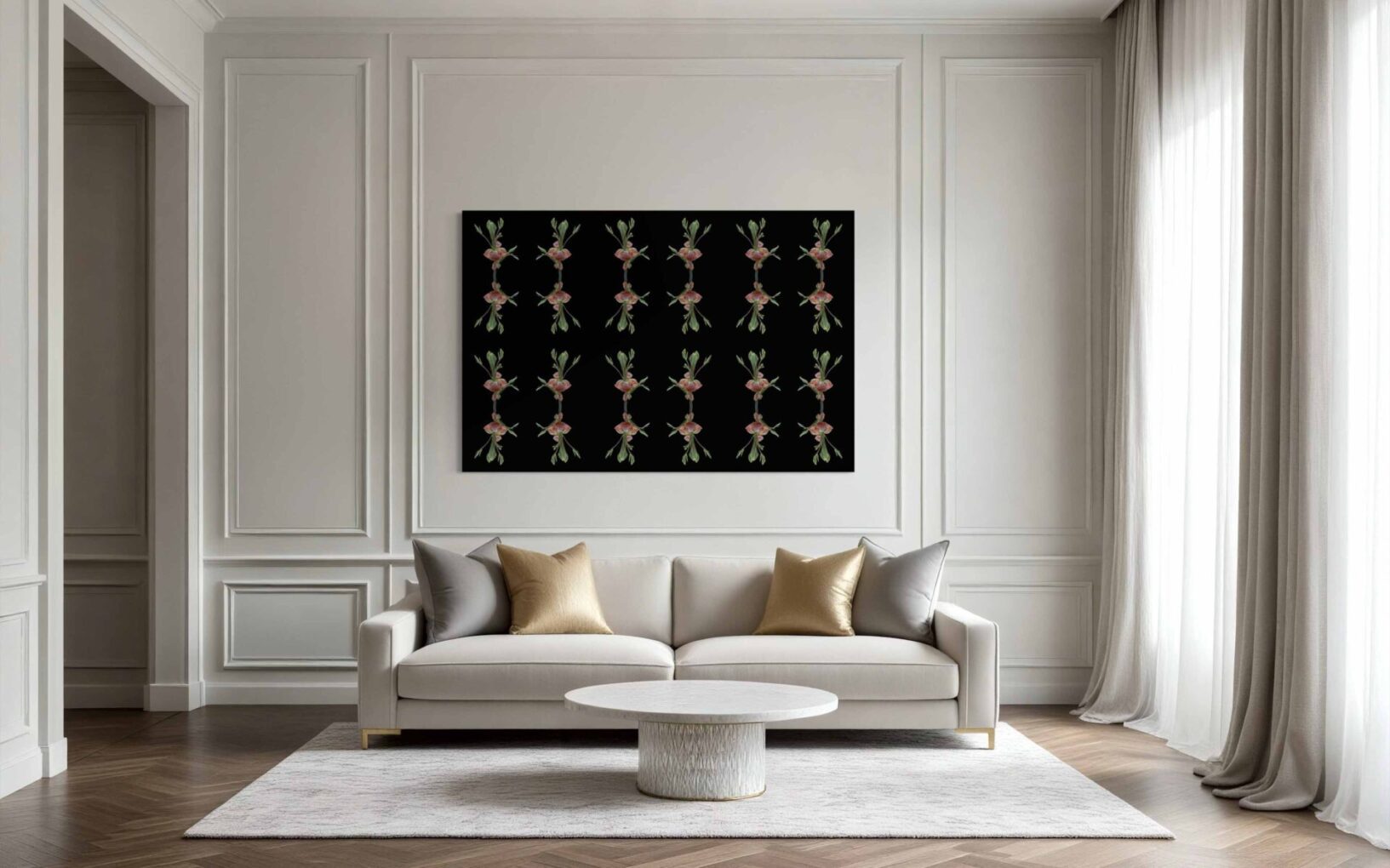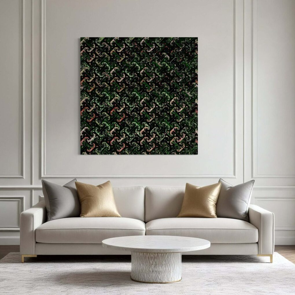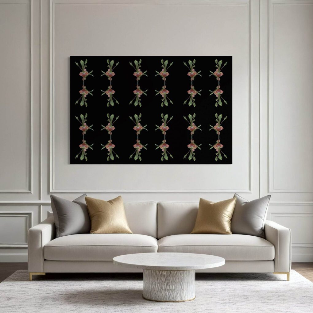 A delicate early-spring flower unfurling in the woods was the muse for this original photograph. The muted pinks and deep green tones inspired me to create abstract compositions with layered patterns and expressive forms. The series highlights the quiet beauty and sculptural presence of this understated bloom. —Lauren Karp