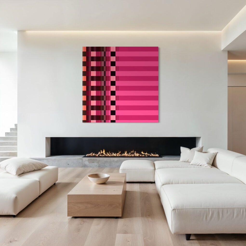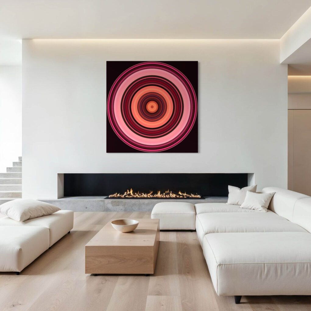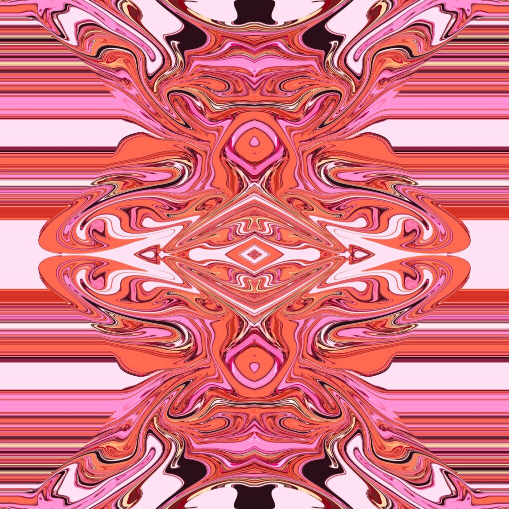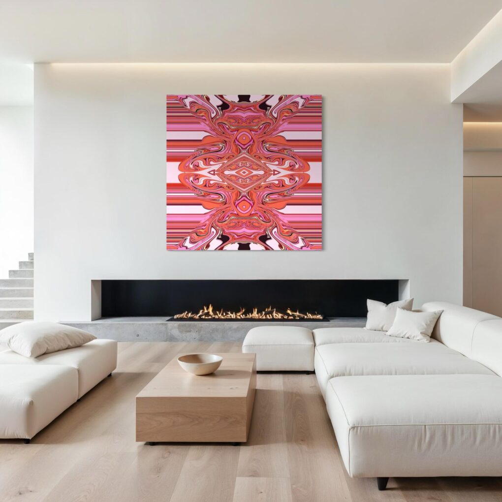 For this collection, I photographed a velvety crimson tulip and merged the flower with an abstract background derived from vivid colors of the surrounding spring garden. Bold reds, pinks, and flowing forms interplay to create contemporary compositions filled with energy and modern elegance. —Lauren Karp